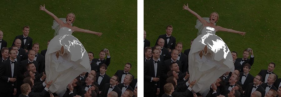 På skärmen kan det vara svårt att avgöra om de ljusaste partierna i bilden kommer att tryckas med en bra återgivning. Kommer de bli helt utfrätta, eller kommer de återges med en bra ton?